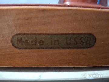 Piccola macchina da cucire vintage da collezione made in USSR. Corpo macchina in metallo su base di legno, misure circa 25x12 altezza 18 cm.