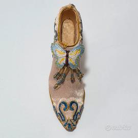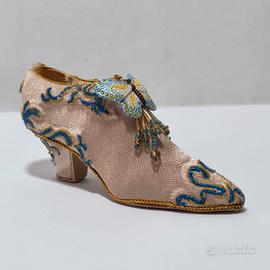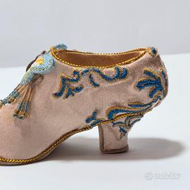 Piccola scarpa con tacco in miniatura rivestita in seta e decori in resina. Si trova in buono stato. Lievi segni del tempo. Misure: 10,2 x 3,1 x h 4,7 cm circa antiquariato libro antico libri rari manoscritto limitata prima edizione scultura statua busto bronzo marmo ceramica dipinto quadro pittura arte antica olio su tela telaio cornice dorata legno intagliato mobili antichi armadio specchiera originale raro collezione restaurato autentico decorazione d'epoca antiquités livre ancien livres rares manuscrit édition limitée première sculpture statue buste marbre céramique tableau peinture huile sur toile cadre doré bois sculpté meubles anciens armoire miroir rare collection restauré authentique décoration d’époque Antiquitäten altes Buch seltene Bücher Manuskript limitierte Ausgabe Erstausgabe Skulptur Büste Marmor Keramik Gemälde Kunstwerk alte Kunst Öl auf Leinwand antiker Rahmen vergoldet Holz geschnitzt antike Möbel Schrank Spiegel selten Sammlung restauriert authentisch Dekoration aus der Zeit antigüedades libros raros manuscrito edición limitada primera escultura estatua bronce mármol cerámica cuadro pintura óleo sobre lienzo marco dorado madera tallada muebles antiguos armario espejo colección restaurado auténtico decoración de época antiques book books manuscript limited edition first bust bronze marble ceramic painting artwork old oil on canvas frame gilded carved wood antique furniture wardrobe mirror restored authentic period decoration silver plata argento 400 500 600 700 800 900 XVII XVI XV XVIII XIX XX