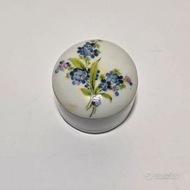 Piccola scatolina in porcellana Lipo (impasto di Limoges). Coperchio con decoro floreale.