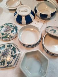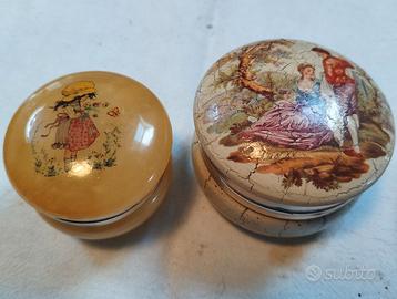 -Coppia scatoline ceramica o porcellana bianco blu.