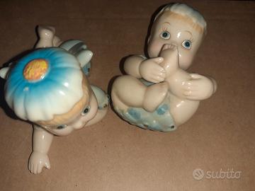 putti in ceramica colorata mis.<8cmx5cm> il più grande