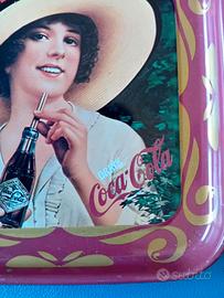 Coppia di piccoli vassoi da collezione Coca-Cola che possono essere utilizzati sia come piccoli vassoi decorativi che come eleganti sottobicchieri in metallo. Misurano circa 10,5 x 10,5 cm e rappresentano una testimonianza storica importante, essendo stati prodotti dall'Industria Italiana della Coca-Cola per celebrare il 50° anniversario della presenza del marchio in Italia, che va dal 1927 al 1977. Come indicato sul retro degli oggetti, si tratta di riproduzioni fedeli in scala ridotta dei celebri vassoi pubblicitari in metallo che hanno fatto la storia del design e del marketing della compagnia all'inizio del secolo scorso. Le illustrazioni ritraggono le iconiche "Coca-Cola Girls" in stile Belle Époque e anni '20, con colori vivaci e dettagli nitidi che richiamano l'estetica classica del brand. La manifattura è interamente italiana e risale alla fine degli anni '70, rendendoli pezzi autentici d'epoca e non riproduzioni moderne. Le condizioni di conservazione sono ottime, con la superficie metallica che mantiene la sua brillantezza originale e minimi segni del tempo.
