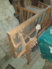 piccolo carro con seduta, rifatto in parte fedelmente come l'originale, con panca per conduttore e piano di carico, tipologia rara da trovare, mancante di ruote, da restaurare per esposizione