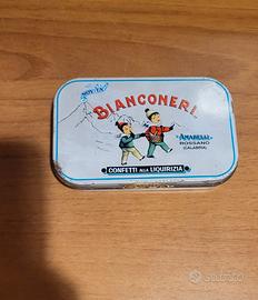 Piccolo cofanetto vuoto dei confetti alla liquirizia bianconeri vintage.