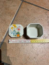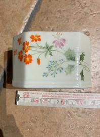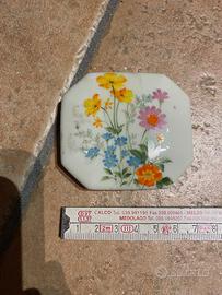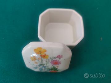 Delicato cofanetto in ceramica con decorazioni floreali dipinte a mano. Perfetto per custodire piccoli oggetti.