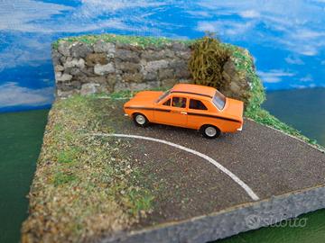 Vendo piccolo diorama scala H0 con modellino Ford Escort Mexico della Wiking.