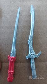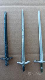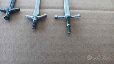 Piccolo lotto spade/armi per action figure sconosciute. le ultime due a destra hanno l'elsa spezzata.
