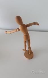 Manichino corpo umano in legno, completamente snodabile, altezza 33 cm.
