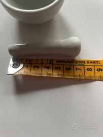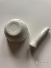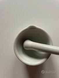 piccolo mortaio e pestello in ceramica bianca