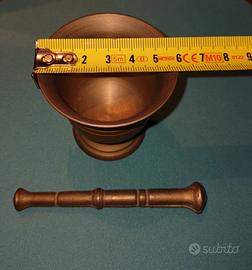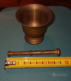 piccolo mortaio con pestello in ottone misure altezza e diametro 6 cm, presumibilmente anni '50. Spese di trasporto a carico dell'acquirente.