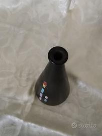 vaso in ceramica smaltato nero con fascia decorata a smalti policromi alt. cm. 15,5 diametro base cm. 12 diametro bocca cm. 3 epoca seconda metà '900