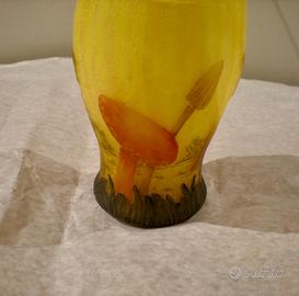 Vasetto a firma Daum Nancy in pasta di vetro trattata agli ossidi, decorata a cammeo e dipinta a freddo a smalto, di gusto art nouveau.