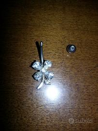 UN BELLISSIMO PIERCING NUOVO MAI USATO PER OMBELICO IN ARGENTO 925 (vedi le foto con il marchio/timbro sul retro del fiore del piercing) FATTO A FIORE BIANCO CON IL GAMBO E 4 PETALI CON PIETRE BIANCHE E 1 PIETRA PIù PICCOLA BIANCA AL CENTRO E 1 ALTRA PICCOLA PIETRINA BIANCA CHE FA LA FOGLIA SUL GAMBO,PERFETTO E NUOVO MAI USATO E IN VERO ARGENTO 925 MASSICCIO(cioè NON PLACCATO ARGENTO MA TUTTO IN ARGENTO),SENZA NESSUN DIFETTO,è della classica dimensione di 1 piercing per l'ombelico.