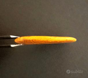 Diaspro brecciato con infiltrazioni silicee, sul lato più piatto il tessuto delle rotture ricompattate disegna un paesaggio alpino con molte profondità e spazi aperti che portano l'osservatore alla meditazione. Adattabile come pietra centrale per un collier in stile celtico.