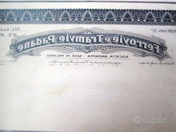 Pietra litografica incisa serviva per stampare azioni della società anonima Ferrovie e Tranvie Padane.