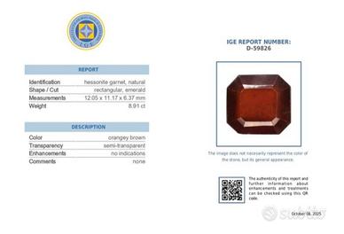 Si vende ottima gemma, un Essonite con certificato e sigillata. Da collezione o montaggio su gioiello. 8.91 ct
