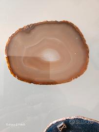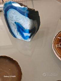 vendo gruppo di minerali agata e le altre credo siano simili ( non me ne intendo ) ho giusto visto qualche foto su internet . Due come ben si vede sono state trasformate in orologi ( funzionanti) mentre la blu è bianca ha l'angolo in basso un po' steccato.