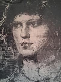 Caratteristica opera di PIETRO ANNIGONI litografia bianco e nero VOLTO DI DONNA cm 50x70