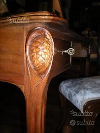 Studio ( libreria e scrivania vendibili individualmente) Edouard Diot , in legno di mogano finemente intagliato , con ferramenta in fusione a cera persa di bronzo dorato, di smaccato gusto Art Nouveau.