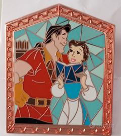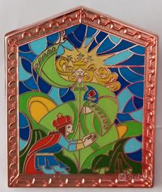 Due pin in metallo, realizzate nello stile delle vetrate. Parte posteriore della pin a forma di Topolino. Le pin misurano: H 4 x L 3 cm circa