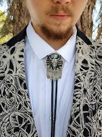 Da indossare come Bolo Tie (cravatta a laccio), con un cordino nero o in cuoio, come mostrato nella quarta immagine.