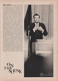 1) ragazza bionda su sediolina arancione; sul retro articolo sul senatore John Lindsay (1964)