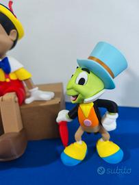 Stupenda coppia Pinocchio e Grillo parlante (Jiminy Cricket) in stampa 3D. Altezza rispettivamente di 25 e 15 cm