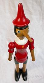 Contatti prego Tel. Voce : 333 - 4402586. Pinocchio Vintage, tutto in Legno tornito, costruito e decorato a mano, fatto in Toscana, oggetto Vissuto di altri tempi, altezza Cm. 40, veramente un bel pezzo, si può mettere a sedere, gira la vita, gambe e braccia posizionabili snodabili, la testa si flette in diverse posizioni. Quelli simili che vedete in giro sono riproduzioni, questo esemplare Vintage ha un sistema meccanico che regge le gambe proprio originale d'epoca vedi foto 06, e le scarpe fissate con Viti sotto la Pianta foto 02, la patina dei Colori vissuta. Stupendo per il vostro salotto, Vetrine Vintage, raccolte e collezioni, personaggio Storico Universale. Cedo con formula Visto e Gradito. Prego no messaggini, soltanto telefono Voce, grazie.