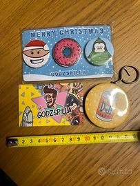 Set composto da 1 portachiavi Duff Beer (Simpson) e 3 pins a tema natalizio
