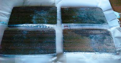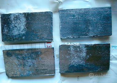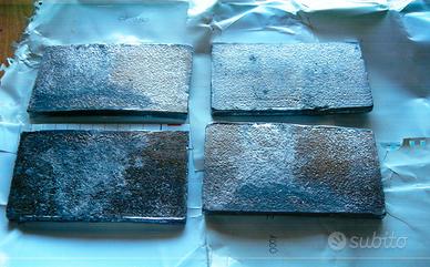 Piombo per fusione quasi puro, con pochissime scorie, per pesca, caccia o modellismo. Peso totale Kg. 4.0 (N°4 tavolette di cm. 14 x 8 x 1 da Kg. 1.0 c.a. ciascuna ).