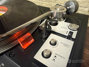 Giradischi a trazione diretta eccellente, funzionale e molto stabile. Un modello top di gamma della serie PL-51xx, progettato da Pioneer, marchio rinomato da oltre 50 anni per i suoi giradischi hi-fi e DJ. Le caratteristiche includono anti-skating, strobo, controllo del pitch, trazione diretta, ritorno automatico e servomotore CC. Piatto e piastra di controllo in alluminio superbi, eccellente braccio a S, tappetino spesso. Prodotto in Giappone.