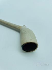 produzione olandese, ben scolpita, cm 19×5, tipico pezzo da collezione o da fumo storica, materiale leggero poroso e pregiato che sviluppa patina col tempo. Forma a bocca curva, con corpo slanciato e fornello inclinato. La finitura è naturale, non decorata, tipica delle pipe Zenith destinate a un uso quotidiano ma di buona qualità. Presente etichetta originale sul cannello. Venduta senza scatola.