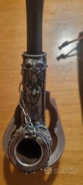 pipa artigianale in radica con decoro in metallo