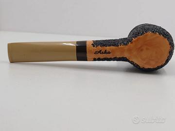 Realizzata in pregiata radica, questa pipa affascina con dettagli raffinati: un elegante inserto in corno naturale e un bocchino in ebanite color sabbia che garantisce comfort durante l'uso.