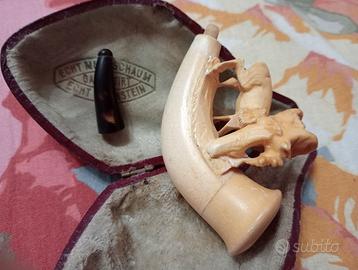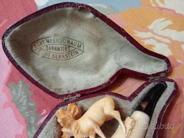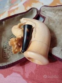 Antica pipa Echt Bernstein Meershaum mai fumata custodia originale dovrebbe essere fine 800 inizio 900 bella ed integra in tutte le sue parti. NO TUTTO SUBITO. Massima serietà - Paolo 339 87 22 475.