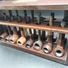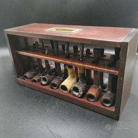 PIPA BLOCCO COMPLETO CON CASSETTO PORTA PIPE BLOCCO COMPLETO CON VARIE PIPE TUTTE USATE TOTALE PIPE 16PEZZI