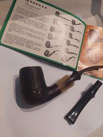splendida pipa in radica rusticata firmata SAVINELLI NONPAREIL 9606 . un modello risalente alla fine degli anni sessanta. in ottimo stato. doppio bocchino nuovo mai usato. una rarità. ricercata dai collezionisti