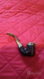 antica pipa da collezione in legno corno e metallo usata poco ma in buone condizioni