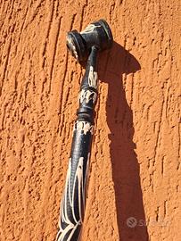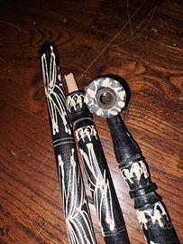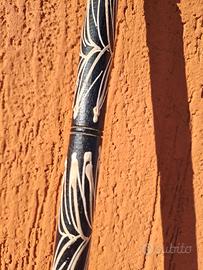 Molto lunga, di 74 cm. Fatta a mano in legno ed anche decorata a mano. Colore nero con decorazione bianche e beige. Smontabile in 3 pezzi. Della seconda metà degli anni 70.