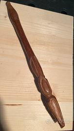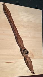 Pipa artigianale in legno intagliato a mano, stile rustico/etnico. Oggetto decorativo ma utilizzabile, con dettagli scolpiti e lavorazione artigianale. In buone condizioni generali, come da foto. Ideale per collezionisti o come pezzo d’arredo originale.