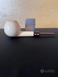 Pipa rodata in schiuma di mare (block merschaum), una generosa apple realizzata da Fikri Baki, bocchino in cumberland con perno anti rottura. Compresa custodia originale.