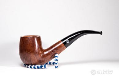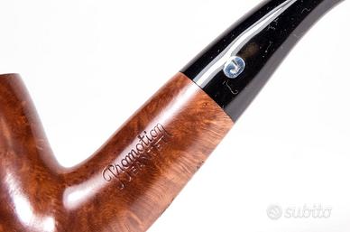 Sicuramente il mio marchio francese preferito, quello che più unisce risultato nelle linee, qualità della radica e originalità degli shape. Uno dei più antichi marchi francesi, ma anche uno dei più creativi, che ha saputo osare con materiali, inserti, finiture e contrasti. Il risultato: pipe sempre originali e in grado di spiccare nella massa delle pipe industriali francesi e non solo. La pipa è una gruppo 4 giusta ma cortina, dalle proporzioni leggermente pot. Tremendamente vintage il risultato complessivo, anche grazie ad un bocchino, che ricorda certe proporzioni di inizio secolo. Nota storica: presenta la stampigliatura “Davoli – Milano”, retaggio e ricordo di una delle tabaccherie milanesi storiche, ormai chiusa da anni.