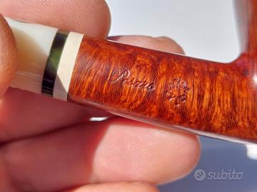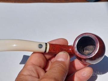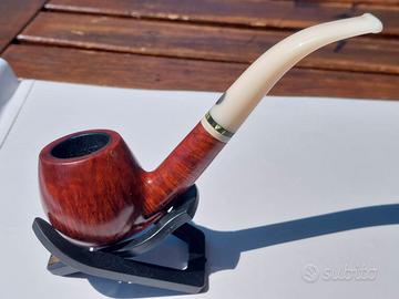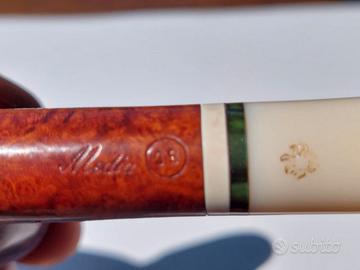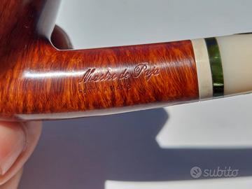Pipa vintage da collezione. Bellissima Mastro de Paja Media 3B. Anni '90. Bent apple con fornello molto capiente (foro 22mm). bella fiammatura, bocchino metacrilato bianco con inserto in lucite verde senza segni di denti. Pipa in ottime condizioni.