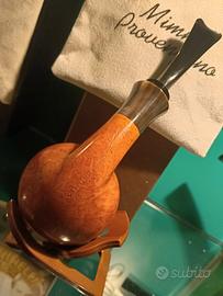 splendida pipa in radica selezionata interamente fatta a mano porta la firma dell affermato Mastro Mimmo Provenzano. Vera in corno e bocchino in ebanite. Nuova, grado C . (massimo livello) un oggetto unico per collezionisti...