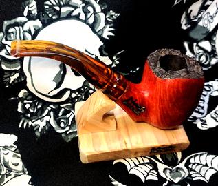 Pipa curva in radica di erica calabrese con bocchino in metacrilato variegato.