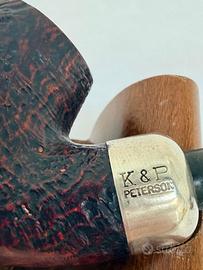 Vendo pipa K&P Peterson originale, shape 314, con marchi ben leggibili “Made in the Republic of Ireland”. Finitura rusticata con bella venatura, ghiera metallica marcata K&P Peterson e bocchino nero.