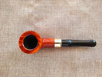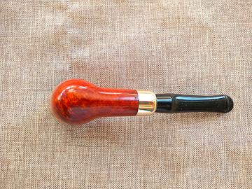 Vecchia produzione anni 60 con logo gnomo. L'innesto del bocchino in ebanite è un vero flock; la ghiera è in nickel. Il foro del bocchino non è palatale, ma disposto in posizione standard a sostituzione della classica apertura orizzontale. Ottime condizioni (pipa poco fumata), ricondizionata e pronta da usare. Cedo a 46€ inclusa spedizione con corriere