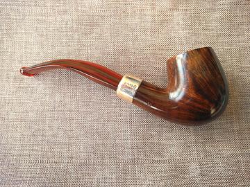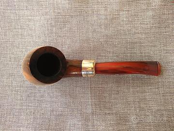 Classica bent, army mounted (oliva in argento), con bocchino in acrilico simil cumberland, tipico delle serie Peterson più recenti. Chi ama il marchio irlandese, ma non apprezza il palatale, potrebbe trovare interessante questo pezzo. La serie ashford si colloca nella fascia medio alta dell'attuale produzione. La radica non presenta stuccature. Le condizioni sono eccellenti, perché la pipa è stata accesa poche volte. Ricondizionata e pronta da fumare, cedo a 100€ incluso sacchetto originale e spedizione con corriere