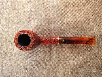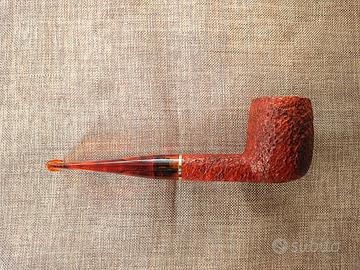 Serie fuori produzione dal 2007, che si piazzava nella fascia entry level. In linea con la produzione che, dagli 80 in poi, ha puntato su colorazioni e accessori sgargianti, questa classica billiard (modello 104) presenta una piccola vera in ottone che stacca la testa rusticata di colore arancio e il bocchino in acrilico che richiama il color ambra. Immancabile la predisposizione per filtro in balsa da 6mm. Ottime condizioni, ricondizionata e pronta da fumare, cedo a €46 inclusa spedizione con corriere