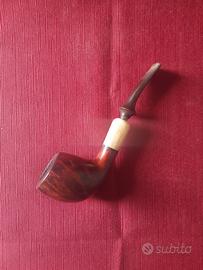 Splendida pipa Prince Albert Piccadilly 🌟, caratterizzata da un design elegante e raffinato 🎩. Il fornello in pregiata radica con venature naturali 🪵 si abbina perfettamente alla vera chiara🦴, che dona un tocco distintivo. Il bocchino curvo con dettagli scolpiti conferisce un'aria vintage e sofisticata 🕰️, perfetta sia per fumatori esperti 💨 che per collezionisti 🏆.